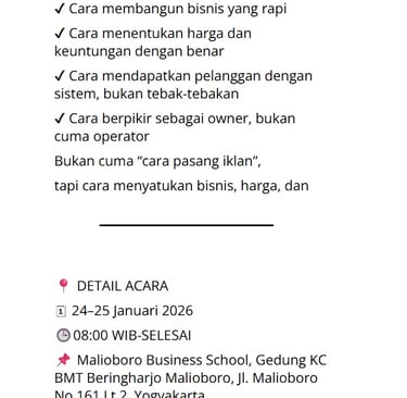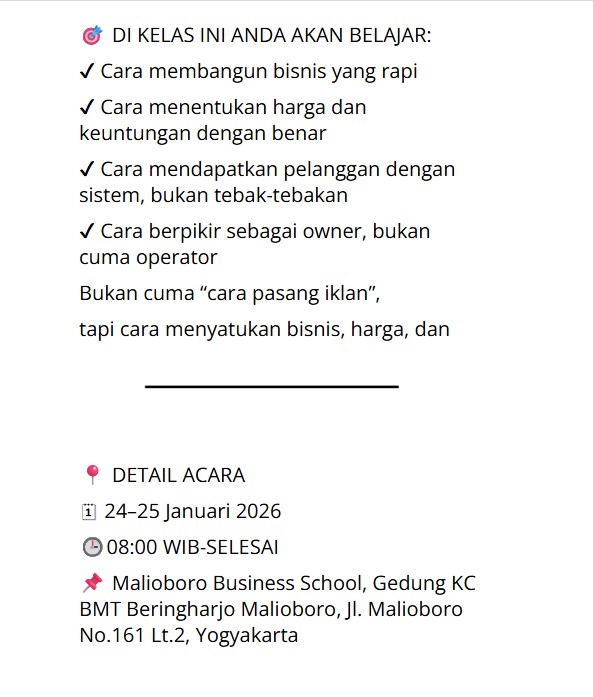 📌 Malioboro Business School, Gedung KC BMT Beringharjo Malioboro, Jl. Malioboro No.161 Lt.2, Yogyakarta