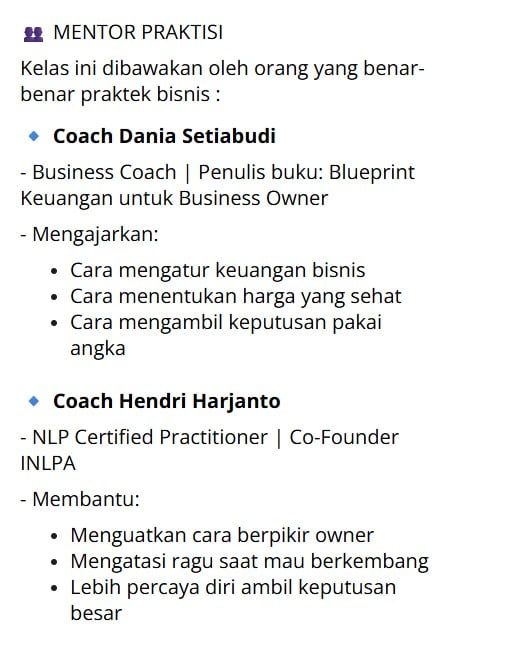 Kelas ini dibawakan oleh orang yang benar-benar praktek bisnis :